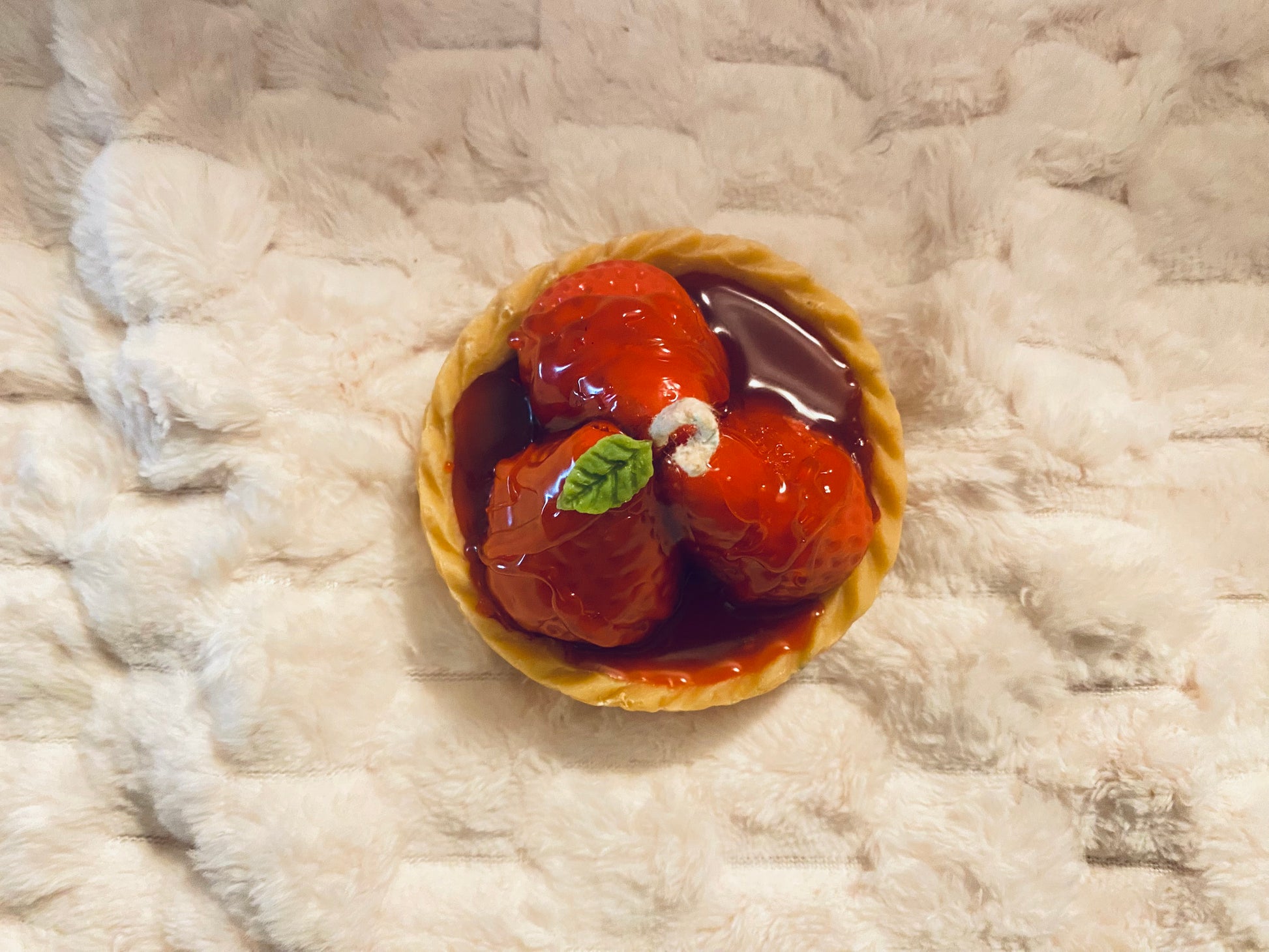 Bougie mini Tartelette à la fraise |Bougie Pâtisserie | Strawberry Pie Candle | Bougie Gourmande | Bougie Leurre | Bougie décorative
